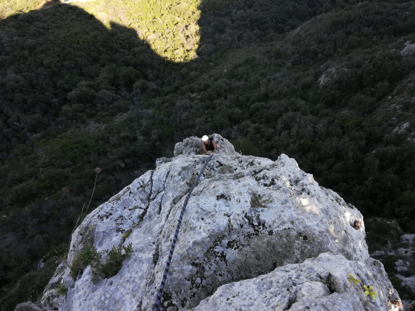 La “Costa della Scogliera” è una vasta area rocciosa che si trova nella zona sud-orientale dell’Argentario vicino a Porto Ercole nella bassa Toscana. La parte più interessante è la parete detta delle “Canne d’organo” inserita tra un fitto e rigoglioso bosco ricco di profumi intensi e l’infinità del cielo azzurro che si confonde con la profondità del mare. Il nome singolare della struttura è stato coniato perché quando spira forte il vento e s’infrange contro le rocce, sembra un organo che suona. Se sei lì sullo spigolo in questa situazione di forte energia, Una dolce armoniosa melodia ti accompagnerà e risuonerà nella tua mente anche nei giorni a venire. La roccia che caratterizza questa zona è un buon calcare grigio molto tenero con sfumature rosa, ricco di appigli.Le vie sono molto belle e varie a partire dalla superclassica sullo spigolo che ha un’alta frequentazione per le basse difficoltà per la particolare roccia che presenta, ed anche per la dolce ed aerea tranquillità che si respira. Il clima mediterraneo ideale nelle mezze stagioni, permette spesso l’arrampicata anche nei periodi invernali e se ventilato anche durante i giorni caldi d’estate. giunti all’Argentario ci si porta a Porto Ercole e all’entrata del paese si svolta a destra seguendo le indicazioni per la strada panoramica. Dopo aver superato un lieve scollinamento si continua a destra e subito dopo vi apparirà la bella parete della “Costa della Scogliera” alla vostra destra. Giunti sulla verticale della bastionata rocciosa più evidente si posteggia in un ampio spiazzo sterrato sulla sinistra. Accesso alla parete delle “Canne d’organo”: dal posteggio si continua sulla strada asfaltata per una trentina di metri fino a prendere (ometto) uno stretto sentiero sulla destra che si inoltra nella fitta macchia. Poco dopo si segue un canale attrezzato con delle corde fisse. Poco prima della “falesia della grotta” si piega verso sinistra e per tracce evidenti si arriva all’attacco della via classica sullo spigolo. Continuando verso destra invece si arriva alla “falesia della grotta” dove parte la “via dello scampo”, oppure appena oltre al diedro d’attacco della “via Feeling”. (15-20 min.) read all